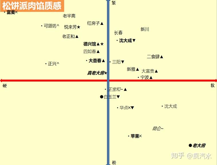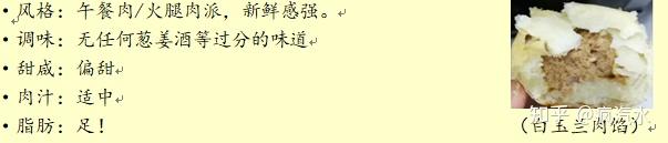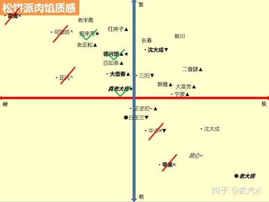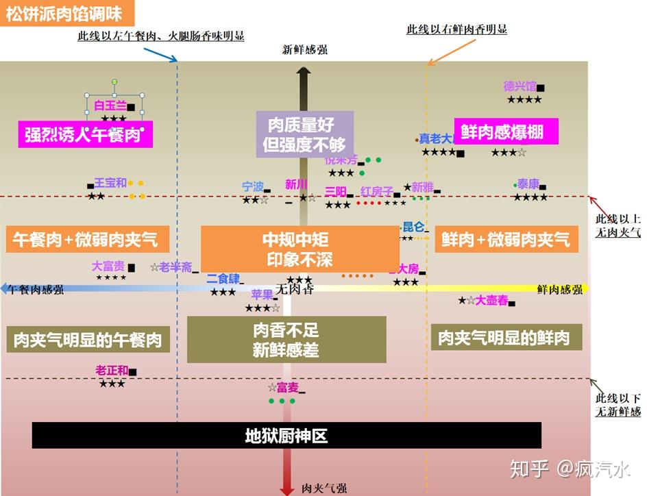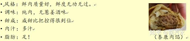 分别落在左上角和右上角的两种肉香风格的肉馅儿,肉感强烈新鲜,而且没有肉夹气。所以我的推介主要锁定在这两块区域。加上本人不爱过重的葱姜酒味,所以我喜欢的肉馅儿是:德兴馆、泰康、四如春、真老大房和白玉兰。