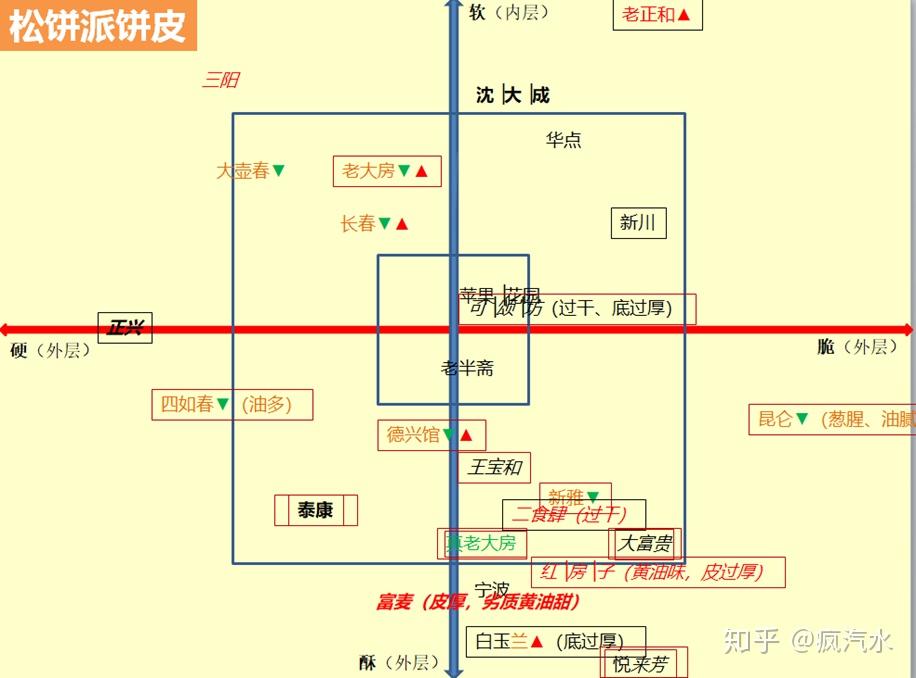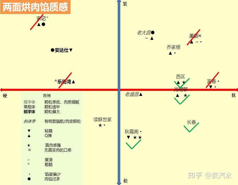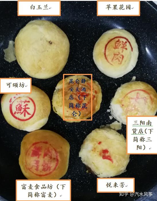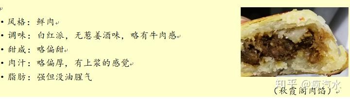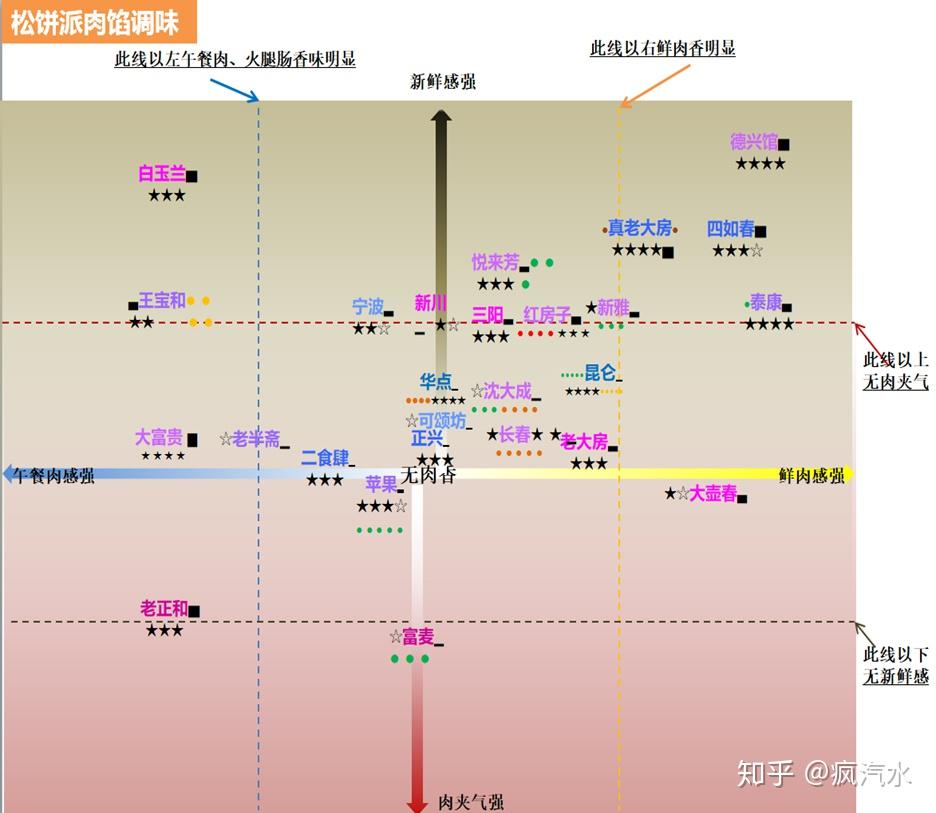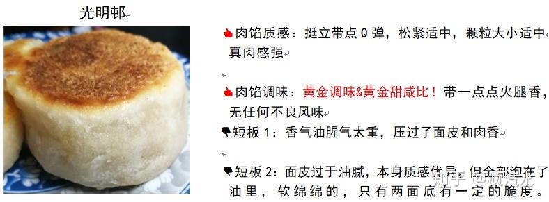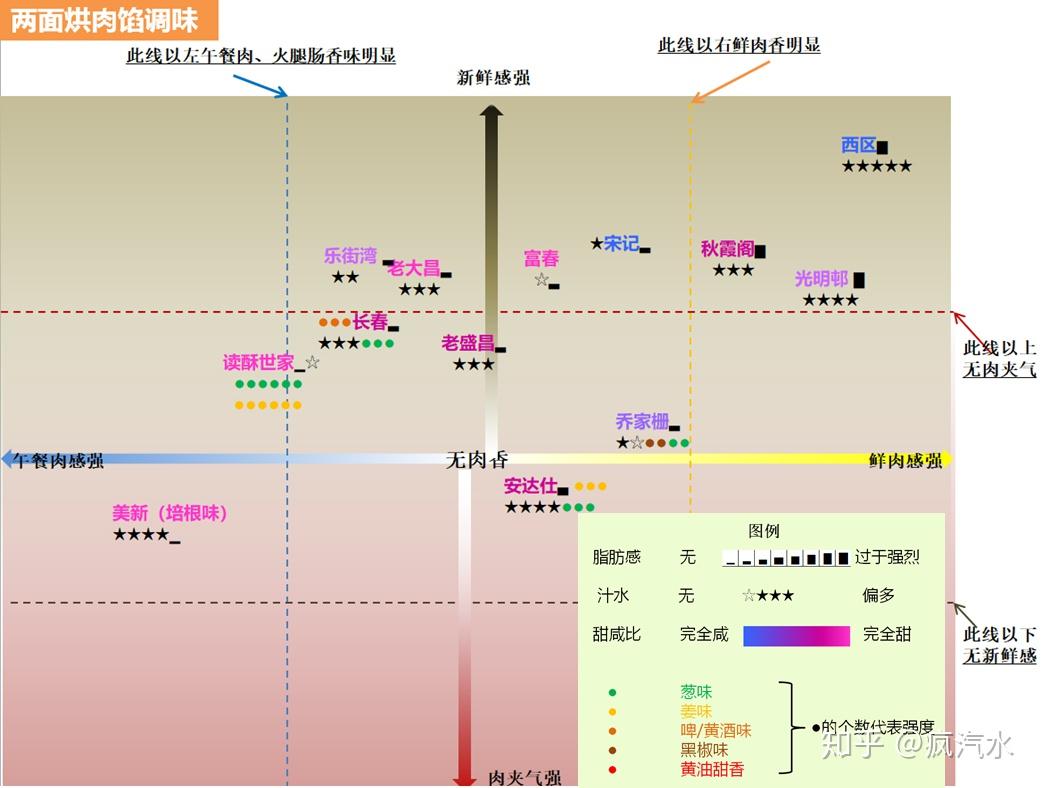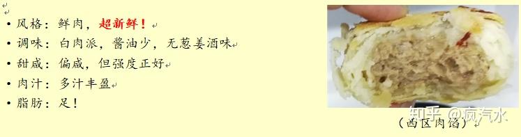 图例乍一看,两面烘的肉馅明显普遍汁水充足,且调味偏甜的居多。去掉我不喜欢的“怪味培根”美新、葱姜味过重的安达仕和读酥世家、以及没有留下太多记忆点的位于坐标中部的一众炮灰,最后还是要推荐秋霞阁、西区和光明邨给大家。