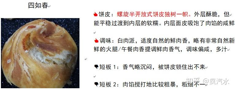 两面烘四项指标皆出彩的店家有西区和秋霞阁。而光明邨则在肉馅上疯狂吸粉,长春在香气和肉馅质感上表现优异。