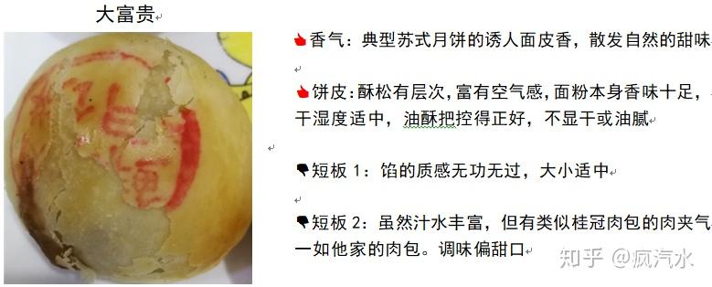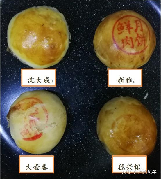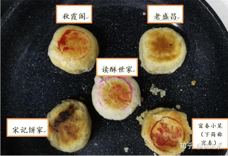 图例我个人比较喜欢外层不油腻且具有一定酥松度、并且能和内层的软糯湿润过度自然的饼皮。这样的饼皮不会让我觉得过腻或吃起来像橡皮泥。在此基础上再pass底部过厚的,因此饼皮方面我推富春、西区和秋霞阁。