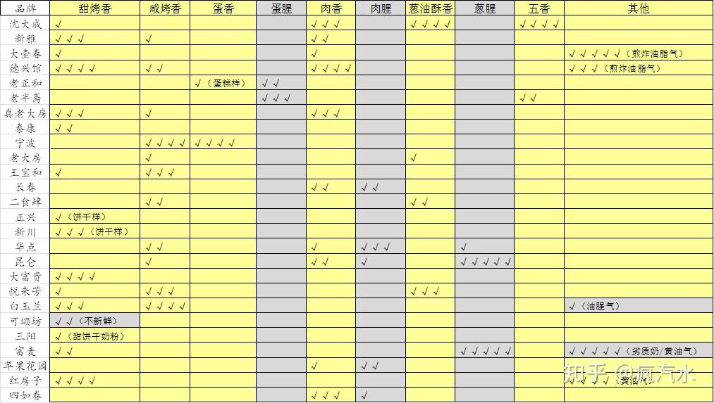 图例按照“烤香一定要有,不含不良香气,且所包含香气类型属柔和或透发”的标准评价,26款松饼派中香气有吸引到我的有:大富贵、新雅、德兴馆、宁波和悦来芳。