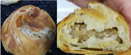 注:长春食品商店的鲜肉月饼有两种,既有松饼派,也有“两面烘”,后者出炉时间不稳定。和松饼派不同,两面烘由于在平底锅上烘熟,表面也不会上蛋液,因此香气主要体现为面粉经加热散发的自然香气和内馅的香气。其中,馅香对香气的影响远大于松饼派。因为干松柔软的饼皮给了肉汁攻陷藏匿的机会,馅香的质量直接决定了整体香气质量。如果内馅中葱姜调味过重,或肉的新鲜感不佳,都会影响整体香气的档次。