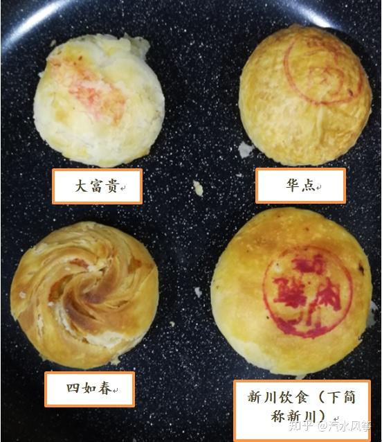 图例各花入各眼,未落入“回”字型的饼皮也未必难吃,例如有的人偏爱啃厚底时的扎实,有的人偏爱极致酥脆和空气感。我的评价标准是:除去皮馅分离、调味腥味过重、过硬、过干或过油的饼皮,都是可以接受的。按照我对外层酥脆、内层干松或油润度适中的偏爱,我喜爱的饼皮有四种风格,代表店家分别是新雅/真老大房、四如春、悦来芳/大富贵和王宝和。