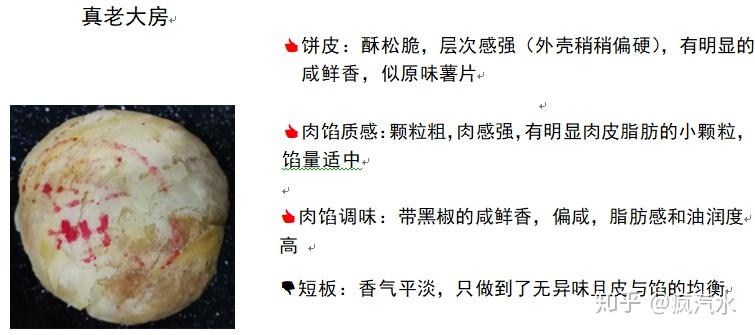 注:“华点”为第一食品商店的自营品牌,即上海帝姆松食品有限公司。极具诱惑力的香气是好月饼成功的开始。松饼派的鲜肉月饼由于经过烤制,饼皮外表大都会被面粉或甜或咸的烤香笼罩,面粉的烤香质量对整体香气舒适度的影响很大。